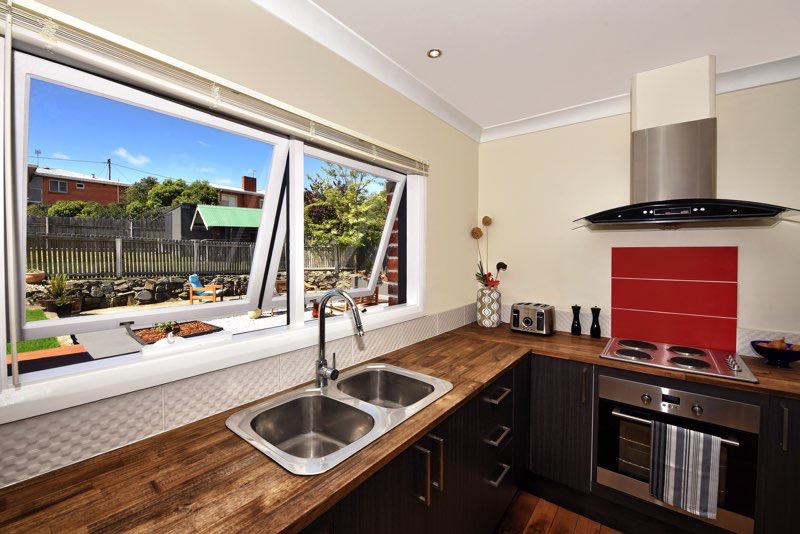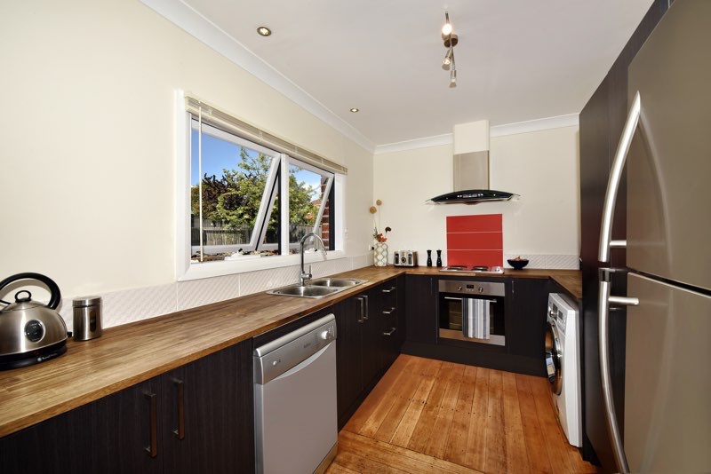 Carpet was pulled up in the living room revealing beautiful Tasmanian oak floor boards which were brought to life with a good sand and polish adding tonnes of warmth and character. The kitchen gutted, opened and completely updated which really brightened the space.